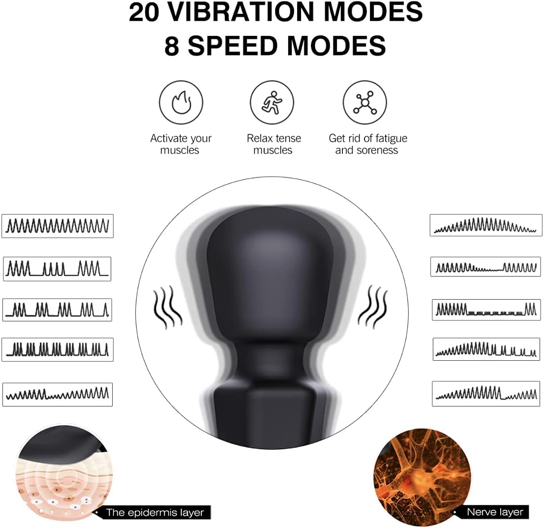 - Quiet with 20 vibration modes and 8 speed levels, whether you want a relaxing experience or an intensive massage of your muscles, this rod ensures relaxation.